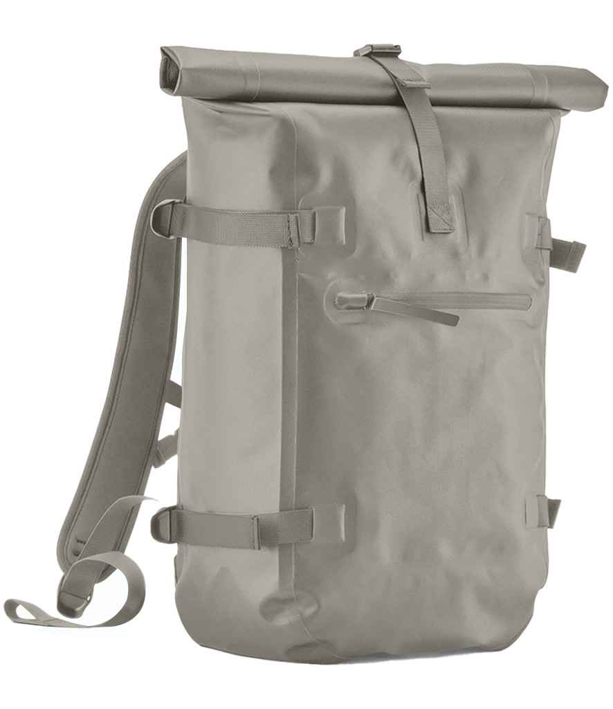 - Waterproof main compartment with roll-top closure.