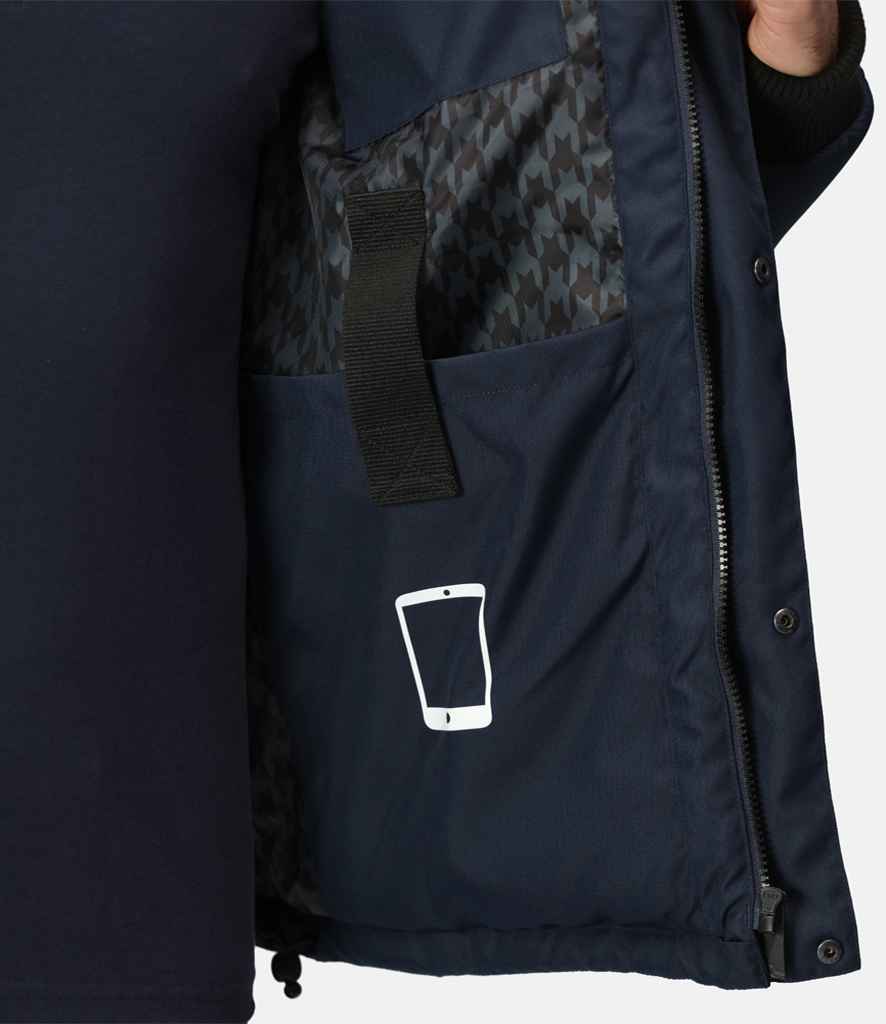 - Full length front zip with studded storm flap.
